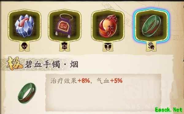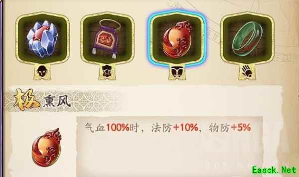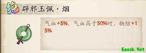 最适合衣服的饰品当属这枚气血+5%,气血高于50%时增加15%物防的绝品[碧血玉佩],在对抗物理攻击时作用明显。