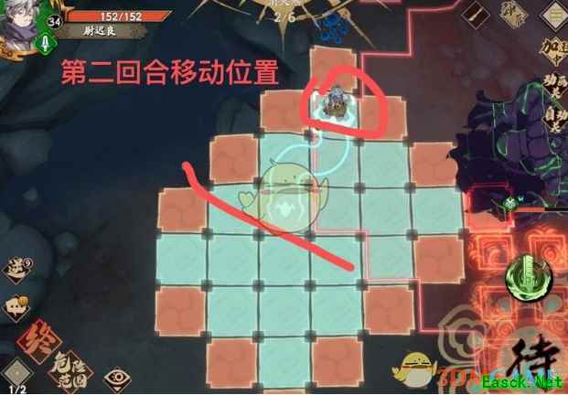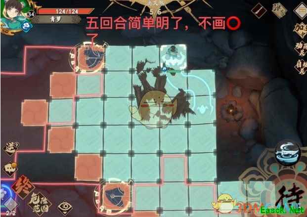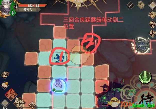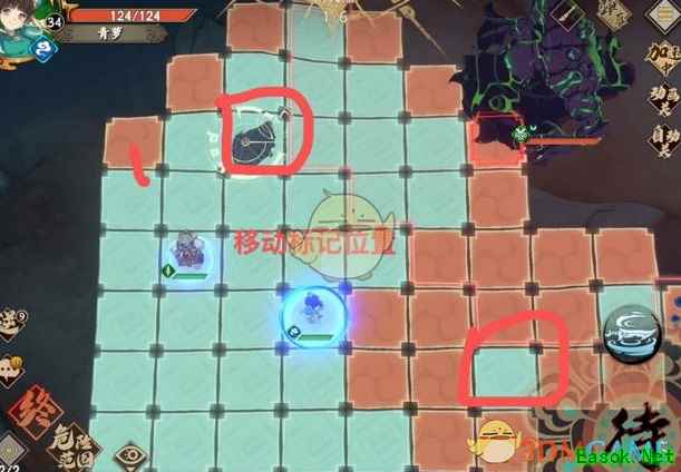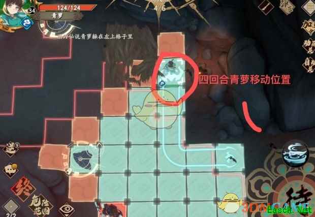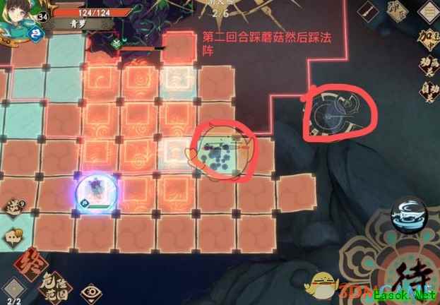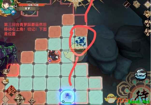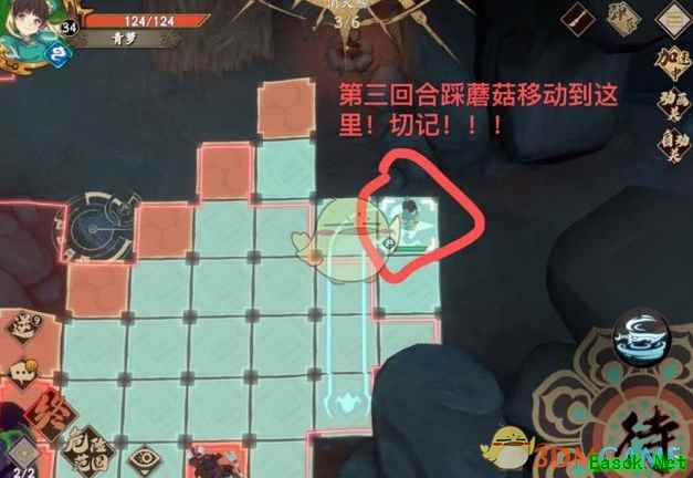 第三回合青萝踩蘑菇,然后移动右上角,切记。