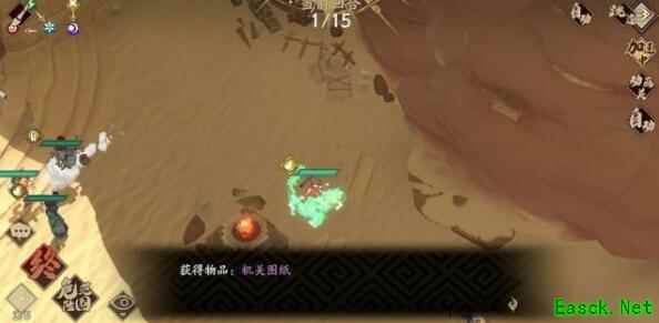 2、2-1声东击西,右侧火堆上面的机关图纸。 作用:可用于合成机关。