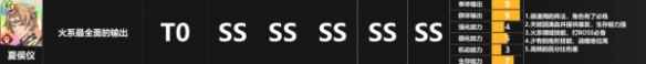 火系最全面的输出 推图:SS,尸王:SS,灵脉:SS,幻境&三途川:SS,队伍搭配:SS 简评: 很通用的阵法,必练角色 天赋回满血并提供爆发,生存能力强 火系领域技能,打boss必备 地形技能,战略地位高 高频百分比伤害