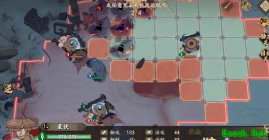 第二回合走位如图,避开地图右侧那个雷属性剑客。