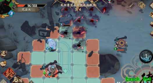《天地劫:幽城再临》咒石兵中级打法攻略挺简单,注意下怪物的警戒范围就行。 流程如图: 第一回合两个石头人走位,第二只使用技能护卫,为第一只档伤害