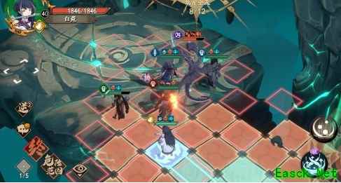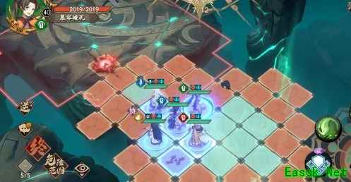 第八回合这是关键回合,具体操作冰离上去踩红点吃buff,直接贴身怪减攻,打2下,触发再动,平砍。剩下4人,2个物理防御高的往上走2格我这里是夏侯和旋妹。剩下2个散开。如果封妹没有踏雪这里需要走上去和任意一个输出交换位置即可。