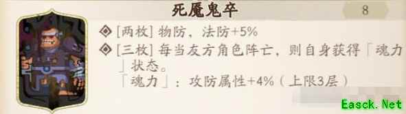 《天地劫:幽城再临》死鬼魇卒强度介绍死鬼魇卒 起效慢增长低。物防法防5%配上死3个才12%的加成,这东西召唤流都不要,现阶段狗粮是它唯一的贡献。(别和我提幻镜胧妖,攻击叠再高也怕菜刀 不加气血都是浮云)