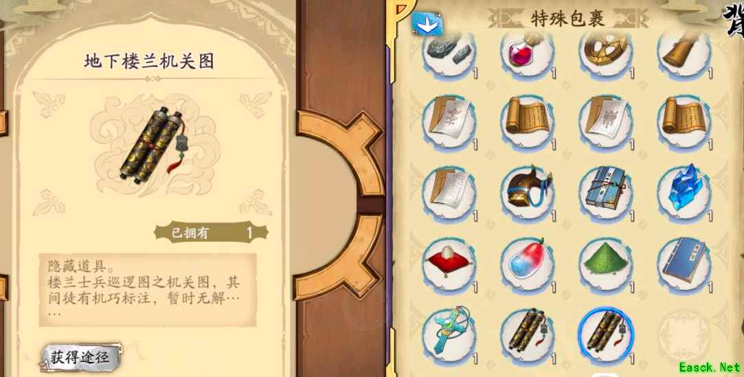 《天地劫:幽城再临》第八章隐藏道具介绍楼兰机关和巡逻地图都拿到会在营地触发对话,然后第八章有隐藏关 1、地下楼兰机关图 获取:8-4救呼延,必须过去打死一个怪才算救到他