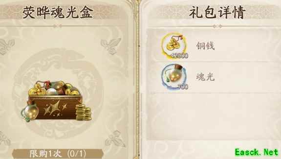 《天地劫:幽城再临》荧晔魂光盒购买建议用40元购买:42000铜钱(46.2),700魂光(98) 价格:98元 价值:144.2元 折扣:六八折(32%off)