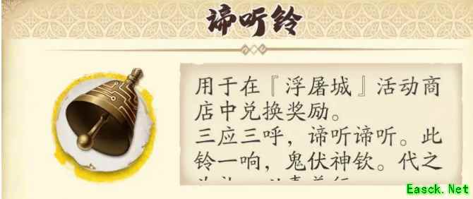 《天地劫:幽城再临》谛听铃作用介绍【作用介绍】 达成特定积分条件后还可以获得活动专属道具「谛听铃」,可以在活动商店兑换灵蕴石、时之印、太玄石、类型自选魂匣等稀有道具!