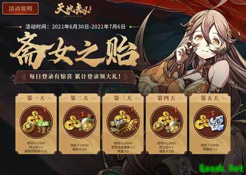 《天地劫:幽城再临》斋女之贻限时活动介绍【活动时间】 限时活动「斋女之贻」将于6月30日10:00-7月6日23:59期间开启。 【活动内容】 活动期间,每日登录可获得大量铜钱,累计登录达指定天数还可获得灵蕴石、类型自选魂匣、魂光、时之印等丰厚奖励。