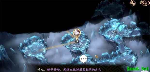 此处绞盘选右转,右边操纵杆选向上可开启通往石柱的路;选向下后往左下走,左下操纵杆选向下,即可在最上路开启通往下一层的传送门。