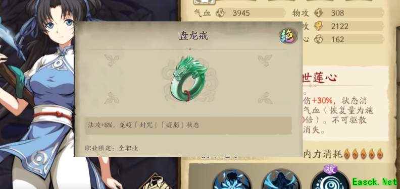 2、赵灵儿饰品推荐 赵灵儿的饰品只要按照常规法师的饰品来进行搭配即可,最好是携带「盘龙戒指」来提供和攻击属性和免疫状态的加成。