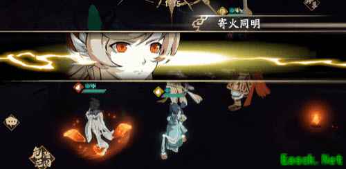 攻击单个敌人,造成0.5倍伤害。并在目标身周2格范围内的单位间弹射造成伤害,每弹射1次,伤害降低7%(最多降低28%伤害),且有15%概率施加「晕眩」状态,持续1回合。(对「燃烧」目标额外提高10%概率,当目标2格范围内不存在除施术者外的其他单位,可弹射至施术者,且施术者不受技能影响;最多弹射4次,且优先弹射未造成过伤害的目标。) 「晕眩」:无法行动,且在对战中无法进行反击。 技能解析: 特殊的[弹射]机制,当技能命中少于5个敌方单位时,可对1个目标造成多次弹射伤害。且技能每次弹射都有概率施加「晕眩」状态,使得技能具有非常高的操作性。 技能【寄火同明】