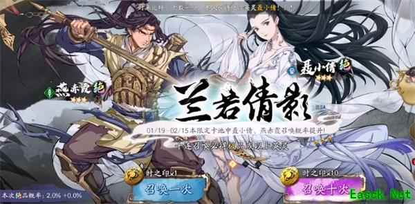活动时间:2022年1月19日10:00 - 2022年2月15日23:59 ★绝品英灵聂小倩&绝品英灵燕赤霞召唤概率提升