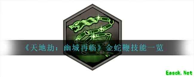 在天地劫幽城再临中金蛇鞭是林月如的专属神兵,很多小伙伴都很想知道金蛇鞭的技能是什么,今天小编给大家带来了《天地劫:幽城再临》金蛇鞭技能一览。感兴趣的小伙伴一起来看看吧。