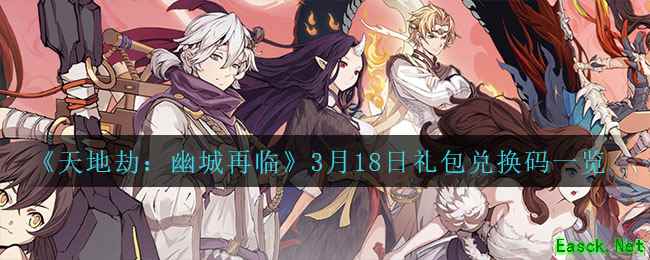天地劫幽城再临的官方给玩家准备了许多福利,发放了许多礼包兑换码,很多小伙伴都很想知道天地劫幽城再临3月18日礼包兑换码是什么,今天小编给大家带来《天地劫:幽城再临》3月18日礼包兑换码一览,感兴趣的小伙伴们一起来看看吧。