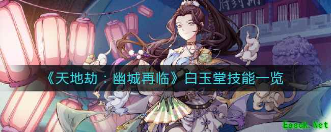 《天地劫:幽城再临》白玉堂技能一览1、天赋:赴义结心 行动时无视敌方角色阻挡。主动位移后,每穿越过1个敌方,获得1层「侠义」状态,并偷取1/1/1/2个随机「有益状态」。且每有一个「有益状态」伤害和暴击率提高2%/3%/3%/4%。(最多提高12%/18%/18%/24%) 「侠义」:行动结束前,若携带3层「侠义」状态,则获得再移动(2/3/4/4格),并消耗2层。(上限3层,无法驱散) 轻功卓绝的白玉堂在每次通过移动或者绝学实现穿人时,可获得1层「侠义」状态并偷取1个敌方目标的「有益状态」。利用自身的多增益效果对被偷取增益的敌方实现高伤害压制,同时利用满「侠义」状态的再移动能力,实现可攻可守的状态。 2、绝学:追风赶月/逐星破日 追风赶月:向前穿刺并到达作用范围(5格)最远可到达的格子上,对范围内所有敌人造成0.3倍伤害,偷取1个「有益状态」,若本次攻击命中2名及以上的敌方,则获得再行动(2格)且不降低「有益状态」的持续时间,并获得「杳影」状态,持续1回合。使用后切换为「逐星破日」。 「杳影」:「对战中」闪避一次攻击,且只可使用「逐星破日」或普通攻击(「对战后」移除,无法驱散)