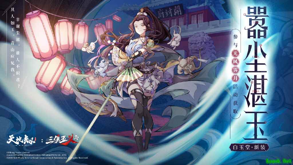 《天地劫:幽城再临》白玉堂嚣尘湛玉皮肤一览一、皮肤介绍 锦毛鼠白玉堂,少年华美,气宇不凡,好行侠义之举,不计较行事手段。她胆大心细,且精于机变谋略,平日里好做男子装扮,却也有时身着女子服饰,外表于她,不过是皮囊而已,行侠江湖,快意恩仇,无关性别! 「这身行头除了兄弟几个,可是没什么人见过,你得替我保密。」这世上确真只有一位白玉堂。但谁又敢说,世上没有另一位身着霓裳,飞天遁地的锦毛鼠呢? 获取途径:8月10日-9月6日,参与光风霁月活动限时获取