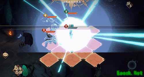 展昭可射出袖箭,无视护卫直接攻击单个目标,在目标气血较低时还有一定增伤,可以通过这个特效轻松收割一些低血单位,并主动制造剑牢地形。 3、绝学:脱剑膝前 从「吴钩流焰」和「侠骨丹心」中选择一个施放。 4、绝学:吴钩流焰 攻击单个敌人,造成1.4倍伤害,「对战前」若目标处于友方「剑牢」地形上则施加「蚀御」状态,持续2回合,「对战后」恢复自身30%气血。 「蚀御」:物防-20%