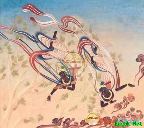 敦煌艺术馆馆藏 沙河敦煌壁画作品《双飞天》 而在天地劫中,联动英灵伎乐飞天分别名为香音与释乐,她们是佛祖的欢愉和智慧的化身,是世间所有乐土的守护者,以歌舞维持着乐土世界的稳定。香音手持琵琶,释乐手持腰鼓,她们天生便能歌善舞,并以此为无量欢喜。