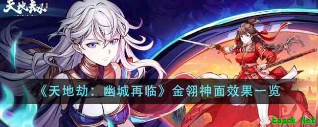 天地劫幽城再临金翎神面效果怎么样?就在最近,天地劫幽城再临将会进行一次版本更新,游戏将会上线全新的角色以及饰品,其中金翎神面这个饰品就有很多小伙伴们喜欢,并且想要知道它的具体效果。今天小编就来为大家详细介绍一下金翎神面这个饰品,小伙伴们一起来看看吧!