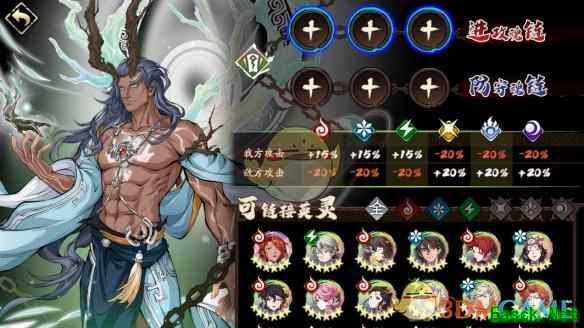 二、魂链系统 魂链系统是神魔属相英灵专属的克制强化系统,通过配置不同属相英灵实现:增强进攻克制伤害,降低被克制伤害。 这里以神属相英灵魂链系统为例:
