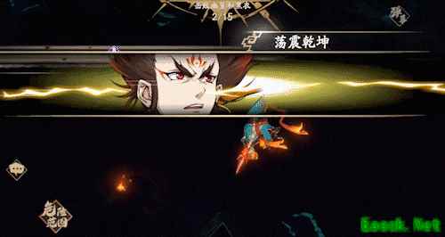 绝学:荡震乾坤 消耗:2 冷却:2回合 射程:自身 范围:直线5格 对范围内所有敌人造成1倍伤害,与目标距离每多1格,则伤害衰减15%,若目标携带「绫缚」状态则使其持续时间+1且自身获得再移动(2格)。
