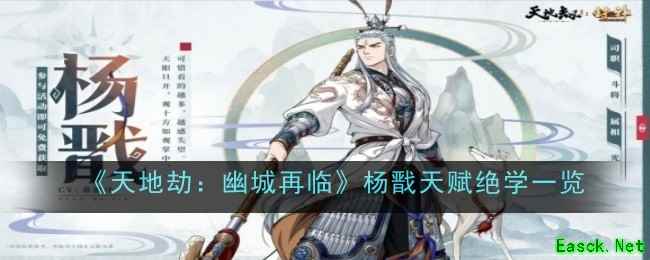 天地劫杨戬天赋绝学是什么?杨戬是天地劫幽城再临将新实装的绝品光属相斗将,那么杨戬有着什么样的天赋绝学呢?接下来就让我们一起了解一下杨戬的天赋绝学效果吧。