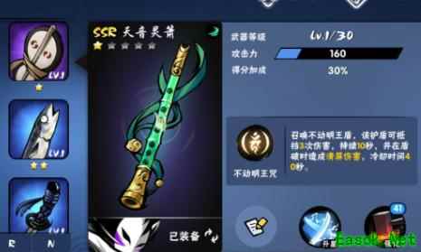 天音灵箫 辅助型的SSR武器,可以召唤盾抵挡伤害,破盾可以造成清屏伤害。
