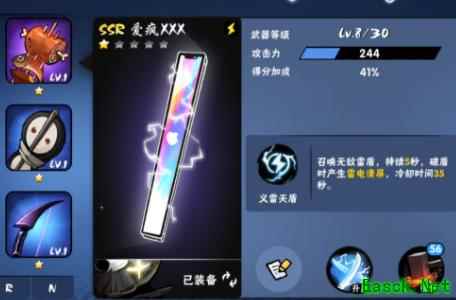 爱疯XXX 一个使用苹果手机名字的武器,也是十分强的,有着召唤雷盾的技能,破盾还可以产生雷电清屏。