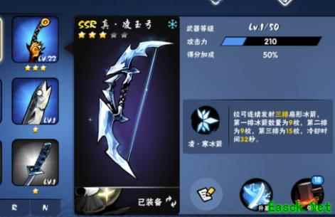 真.凌玉弓 范围伤害非常足,连续发射三排扇形冰剑,冰剑数量依次增加。