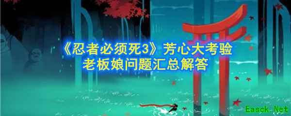 《忍者必须死3》芳心大考验老板娘问题答案是什么呢,不少玩家想知道对于老板娘的问题怎么回答,接下来就让小编给大家带来《忍者必须死3》芳心大考验老板娘问题汇总。