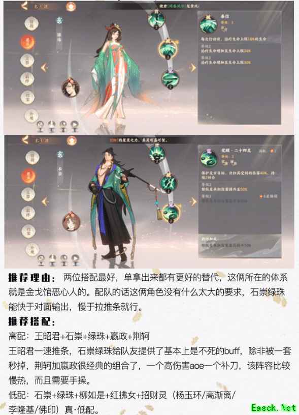 top3:绿珠+石崇 这两位是一个辅助型的名士,可以降低对手的攻速,抢先手必备