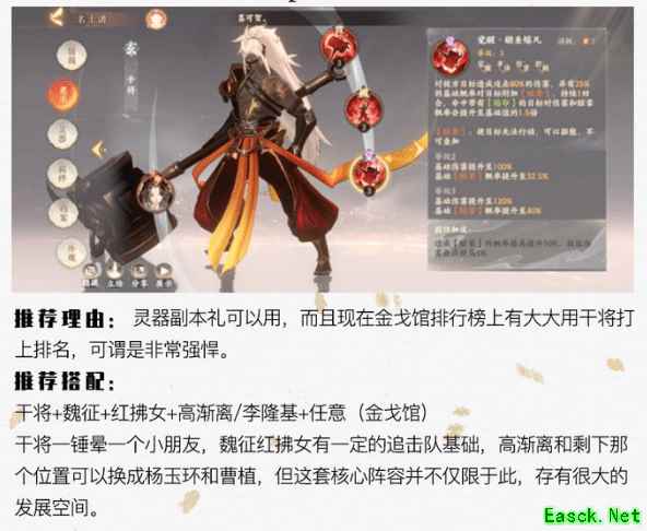 top6:干将 干将比较适合灵器副本礼,在金戈馆使用也比较好。