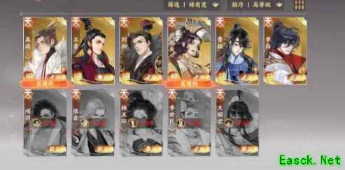 抽卡角色推荐 目前比较好用的名士角色有: 【天级】嬴政、李白、李世民、刘彻、韩非、王羲之、武则天、曹植、卫青、杨玉环、张良、王昭君、项羽;