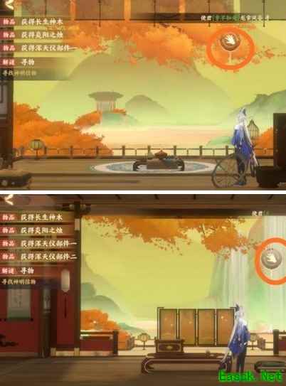 将提示的星星数在一起,就能知道要选择“二十五”,并获得冰鉴钥匙,向左走到尽头后,在如图所示的位置打开冰鉴。