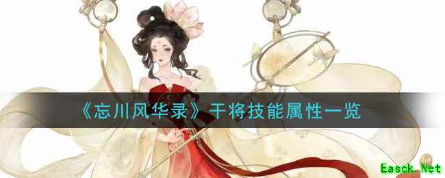 《忘川风华录》手游中有非常多属性技能强度不一样的角色,相信还有很多小伙伴不是很清楚干将技能是什么。下面小编给大家带来忘川风华录干将技能属性一览,感兴趣的小伙伴们一起来看看吧!