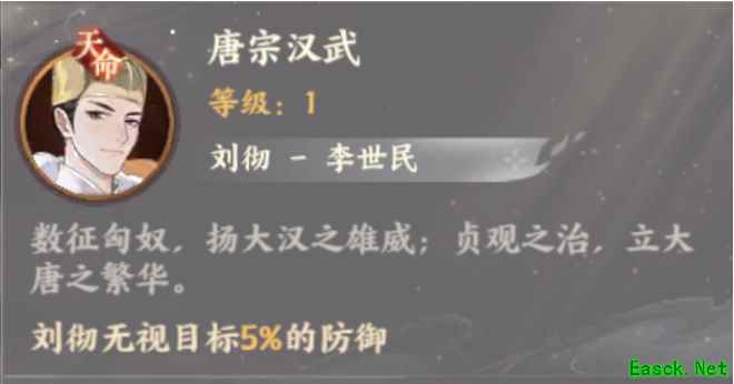 天命效果: 【刘彻】+【李世民】:刘彻无视目标5%的防御
