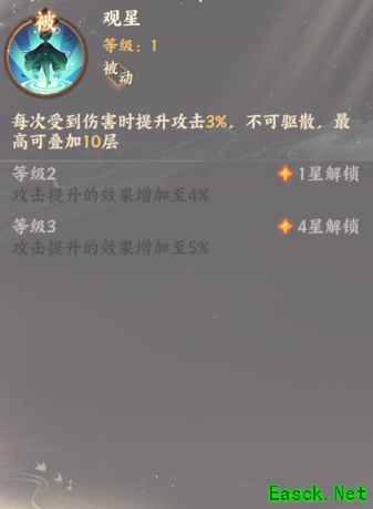 二:观星 每次受到伤害时提升攻击3%,不可驱散,最高可叠加10层