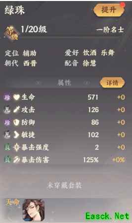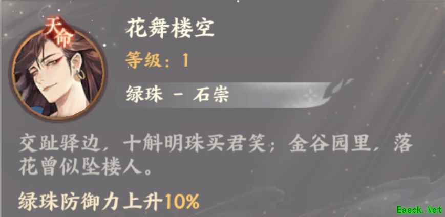 天命效果: 【绿珠】+ 【石崇】:绿珠防御力.上升10