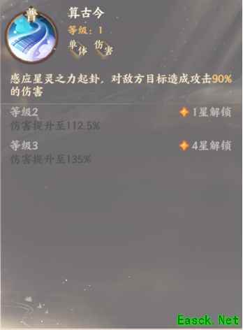 技能介绍: 一:算古今 感应星灵之力起卦,对敌方目标造成攻击90%的伤害