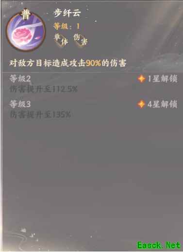 技能介绍: 一:步纤云 对敌方目标造成攻击90%的伤害