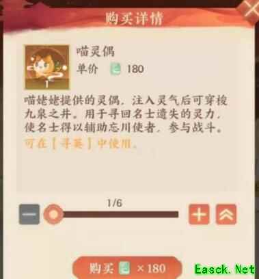 《忘川风华录》喵灵偶作用介绍【喵灵偶】 喵灵偶是喵姥姥提供的灵偶,注入灵气后可穿梭九泉之井。 用于寻回名士遗失的灵力,使名士得以辅助忘川使者,参与战斗。可在【寻英】中使用。