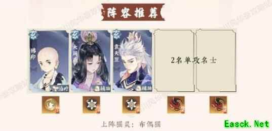 【阵容分析】 天周后:拥有让名士再次行动的能力、增强单攻名士的点杀能力。 宾天罡:可以为队友补充真元,与大周后的多动结合,使点杀更加容易完成。 佛印:集减伤、治疗于一身的优质治疗,可以大幅提高队伍生存能力。 双单攻名士:专门针对“象“与刘邦,在两位辅助的帮助下以最快的速度杀掉目标结束战斗。 双单攻推荐:刘彻、武则天、李秀宁、霍去病、李白、荆轲。 以上就是小编整理的关于《忘川风华录》棋争苏轼通关攻略的全部内容,想获得更多相关游戏攻略可以关注手游网。 本文内容来源于互联网,如有侵权请联系删除。 |