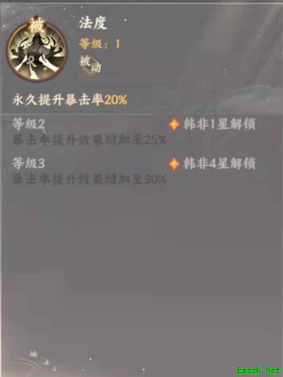 《忘川风华录》韩非天命阵容选择攻略韩非:被动加30%暴击!无敌 这个游戏的另一个不同点就是—— 属性方面:暴击强度取代了暴击概率 楼主实测:随着暴击强度的提高,暴击概率增加的越来越慢 后面是否能满爆,还是一个未知数, (我一身极加两件绝的装备,强化到最高,暴击强度150了,暴击率还不到60%) 就算最后能满爆,属性分配划不划算还有待考虑! (楼主估计满爆至少要暴击强度堆到300以上) 这种机制下再来看韩非的被动是不是就觉得有点无敌了! 韩非的暴击强度只要堆到有70%的暴击率就是满爆了! 最后30%的暴击率其他角色可能需要海量的暴击强度才能满爆! 如果最后1%的暴击率需要非常高的暴击强度, 那么游戏里唯一能满爆的就只有韩非了! 99%=0大家还是懂的吧! (暴击率越高,暴击强度的收益越低!就这个游戏设定,我觉得韩非后期可期!) 1、 前期pve,群体伤害不错,暴击率不低(评分:3星) 前期pve开荒单攻还是香一点,群攻刷的速度会快点 2、 后期pve,满爆真香!(评分:5星) 70%暴击达标,最后30%暴击率对应的暴击强度用来堆爆伤,伤害无法想象,速刷必备 3、 前期pvp,群伤出暴击爽yy(评分:4星) 群伤摸奖出个暴击,伤害比嬴政高!配合荆轲收割也不错 4、 后期pvp,,满爆,高爆伤,输出爆炸(评分:3星) 后期估计大家都会讨论韩非和嬴政的伤害谁是群NO.1了! 给韩非评价较高的原因全是因为游戏数据机制和韩非的被动!