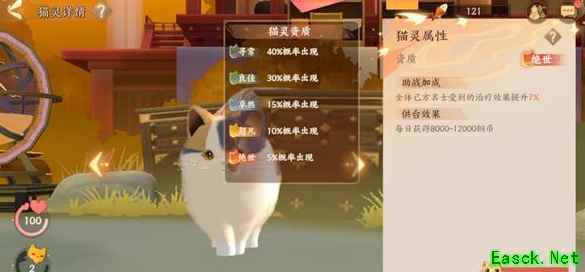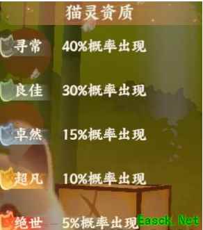 《忘川风华录》猫灵资质排行一览猫猫的资质由低到高分为寻常、良佳、卓然、超凡、绝世 而猫猫结亲是不影响子代猫猫的资质的哦; 如下图所示,我的这只绝世猫猫它的父母的任何一方的资质都未有达到绝世,但这只子代小猫猫确是的的确确的绝世。