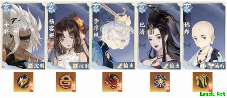 《忘川风华录》镜渊阵容推荐一、关卡介绍 镜渊六层:3单位共享生命条、吃控制、技能固定。普攻为单体攻击,大招为常规群攻伤害附带混乱效果。 推荐阵容:双控制+双群攻+治疗 针对怪物的几大特性,我们的思路为双控制轮流控住敌人,减缓治疗的压力;敌人数量固定为三单位,使用群攻名士输出收益最高;最后安排一个治疗保证队伍生存。 二、阵容配置 1、最低稀有度 双控制:干将(捭阖套)+杨容姬(德盛套) 双群攻:李淳风(踏破套) +巴清(驭衡套) 治疗:佛印(物华套)