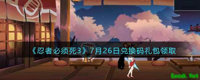 《忍者必须死3》7月26日礼包兑换码领取兑换码:全新风武剑指苍穹 兑换时间:7月26日-8月1日