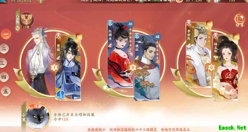 《忘川风华录》名士猫选择推荐名士喵的选择,需要结合目前自身队伍。并且由于资源限制前期只能选一个。这里结合下面的阵容举个例子: