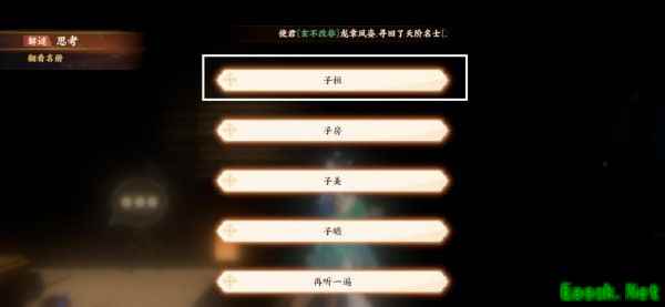 ⑤在钓鱼的猫猫下面石头上的黑色盒子里获得琴徽,密码二三七。砍旁边的竹林,砍两下,获得锯子。把琴徽交给嵇康。 ⑥进入忘川,打开桌上的第二个盒子,一三二三五,获得喜之果。把喜之果喂给鸟,会唱第二首,顺序:1-3-5-4-3-4-3-1获得商音和徵音琴弦,进入幻境,在嵇康面前的石块上获得琴弦,在拱桥左边的柱子那获得琴弦,在竹林获得最后一个琴弦。 ⑦进入忘川,在桌子右边加工,获得岳山,进入幻境,把它们交给嵇康,建议多点几下。 ⑧拼接。 3、辰星之棋 进入途径:主界面、风华录、解谜 (进入解谜模式后) 棋谱部分: 与李淳风对话-寻找苍龙棋谱-左走探查下图的罐子 将苍龙棋谱交给李淳风-与神君对话-贴一下提示 所以选“角、亢、氐”-获得朱雀棋谱-把朱雀棋谱交给李淳风-与神君对话-贴一下提示 所以选“鬼、柳”-获得玉璧-左走找到如图架子 把玉璧放上去-获得玄武棋谱-把玄武棋谱交给李淳风-与神君对话-贴一下提示 把提示的星星数一加,选“二十五”-获得冰鉴钥匙-左走到尽头,在如图所示位置打开冰鉴 获得白虎棋谱-把白虎棋谱交给李淳风-与神君对话-前往击退魇化士兵-右走找到小怪,殴打他-与神君对话-获得花种 信物部分: 在下棋的界面往前走,点发黄光的灯-打开灯罩-获得阳炎之烛 右走在如图位置点击-获得水壶 再左走点地上的香炉-清扫-获得香灰 左走点如图位置四次-获得长生神木 再左走点击如下两个位置-获得浑天仪部件一和二 右走到尽头点击-拼装浑天仪-再次点击观星-获得征伐兵戈 稍微左走一点,到桌子的左面-解谜开盒子 提示如下 选“二五七”-获得明灵水晶 左走,找到四神君把信物挨个交给他们 孟章神君-长生神木 陵光神君-阳炎之烛 执明神君-明灵水晶 监兵神君-征伐兵戈 把紫薇棋谱交给李淳风-完 4、忘川风华录解谜•但愿长醉不复醒 忘川风华录中解谜任务是主要玩法之一。但愿长醉不复醒这个解谜任务应该怎么做呢?使君快来随在下一起看看吧。 解谜任务开启等级:26 一、进入任务以后.按照任务提示,前往李白居所 根据任务提示,尝试唤醒李白 尝试听听李白在梦吃什么,翻看名册. 翻开名册以后,名册给了我们几个选项我们选第一个:【石崇】 选完以后,就可以离开李白居所. 然后进入了,下一个居所查看石崇状况 尝试听听石崇梦吃什么,翻开名册 翻开名册以后,名册给了我们几个选项我们选第一个:【子恒】