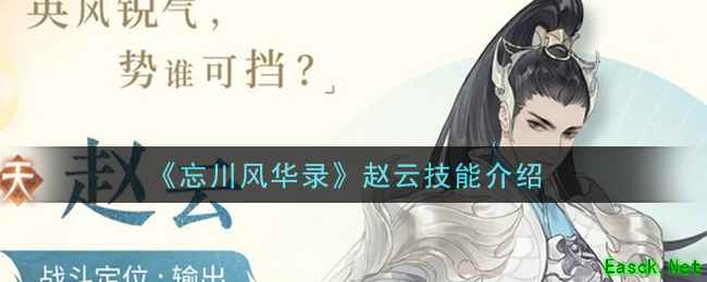 《忘川风华录》手游中的赵云是新上线的一名角色,相信还有很多小伙伴不是很清楚赵云怎么样。下面小编给大家带来忘川风华录赵云技能介绍,感兴趣的小伙伴们一起来看看吧!