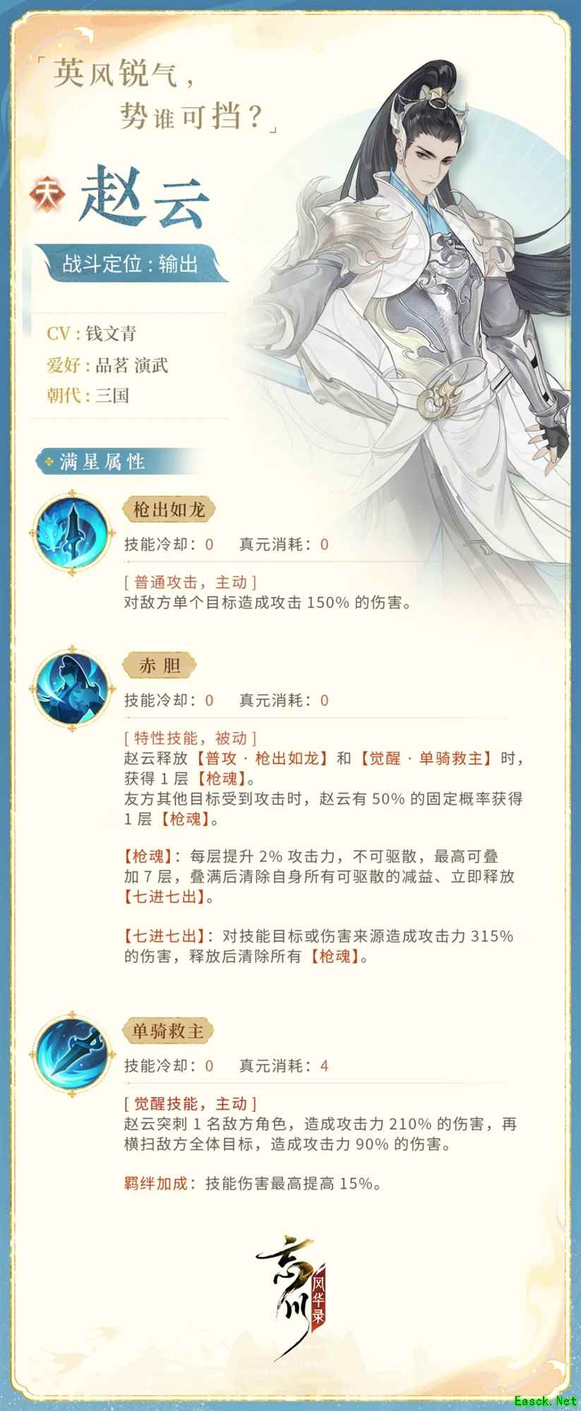 以上就是小编整理的关于《忘川风华录》赵云技能介绍的全部内容,想获得更多相关游戏攻略可以关注手游网。 本文内容来源于互联网,如有侵权请联系删除。 |